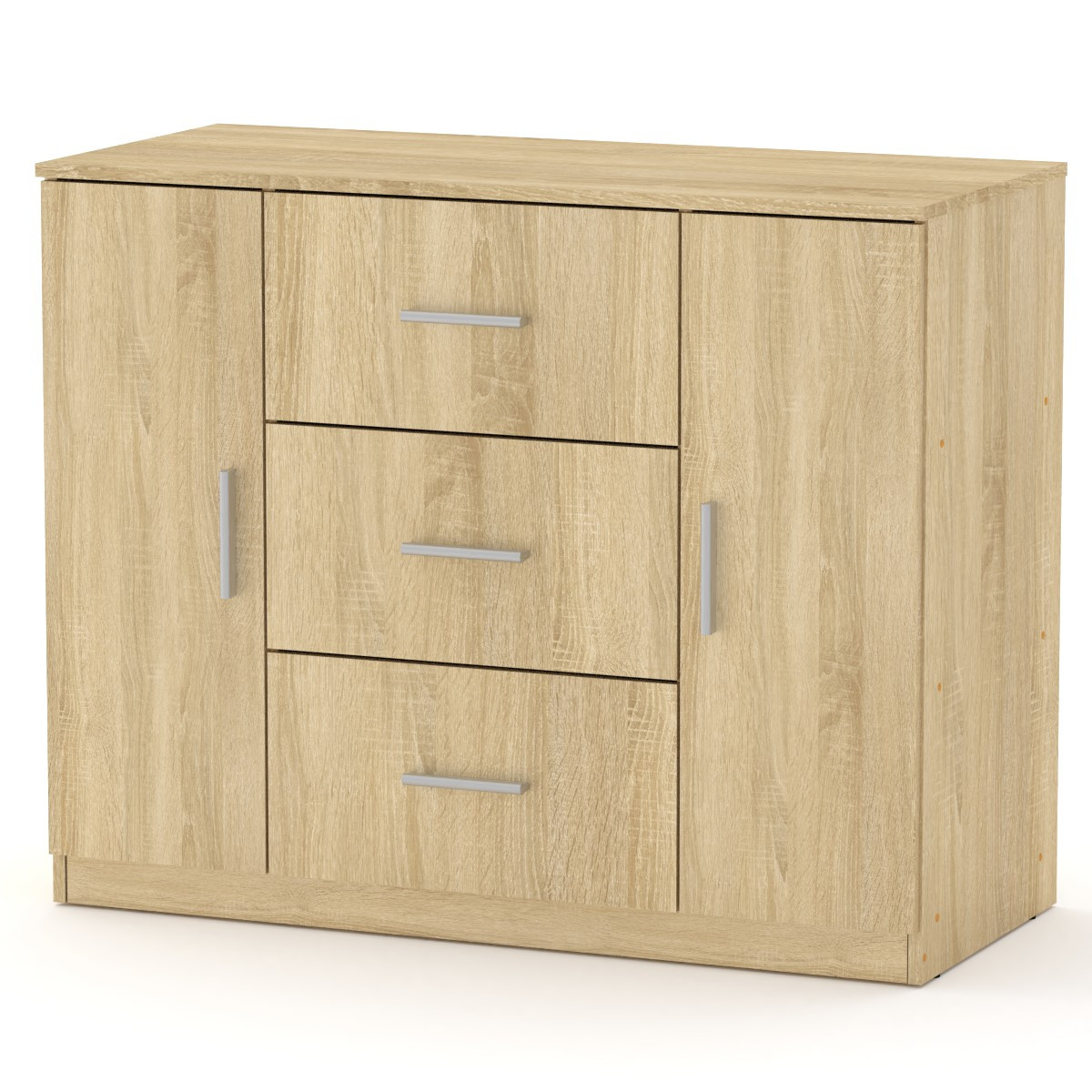 Комод для речей від фабрики Компаніт, який допоможе заощадити простір та прикрасить вашу кімнату. Має три ящики на роликових напрямних та два відділи з полицею. Виготовлений із ламінованої ДСП Swisspan (Швейцарія) товщиною 16 мм.