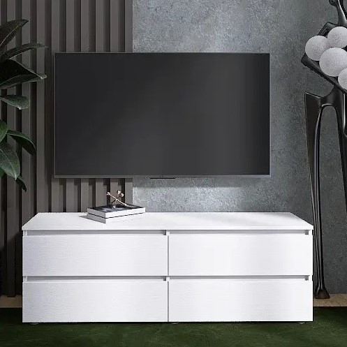 Широка Тумба для телевізора 1400 ЛТВ Лайт Біла (140х38х49 см) Еверест