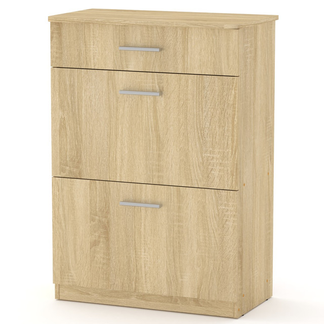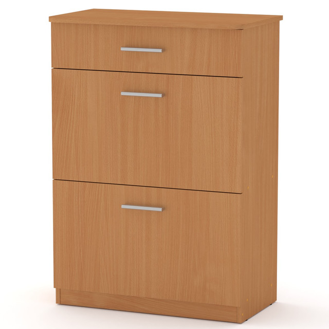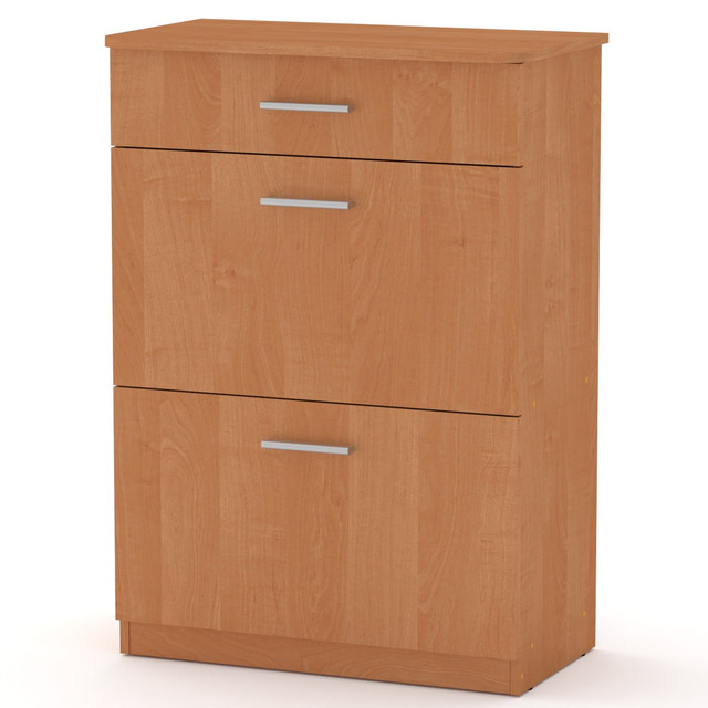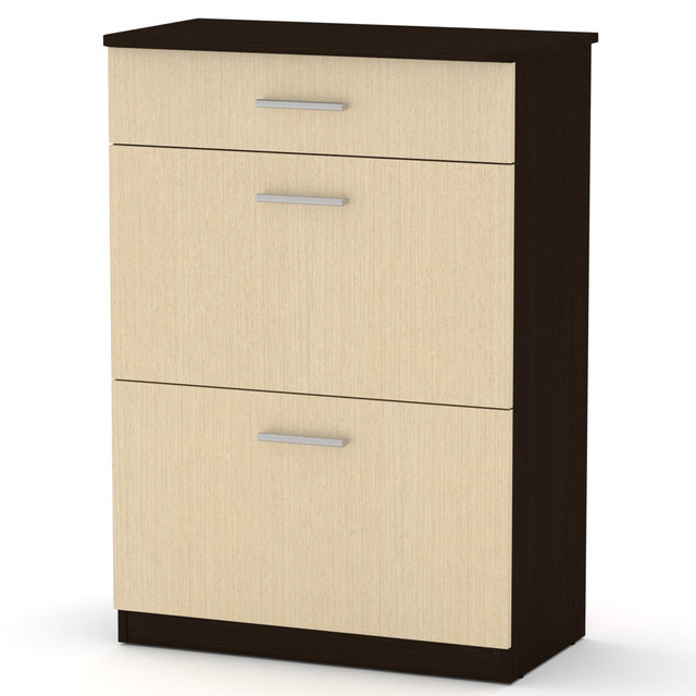 Тумба для взуття від меблевої фабрики Компаніт виготовлена з міцної ламінованої ДСП за технологією Swisspan (Швейцарія). Товщина ЛДСП 16 мм. Тумба складається з двох відділів для взуття та висувного ящика на роликових напрямних. Цей предмет інтер'єру абсолютно необхідний у кожному будинку!