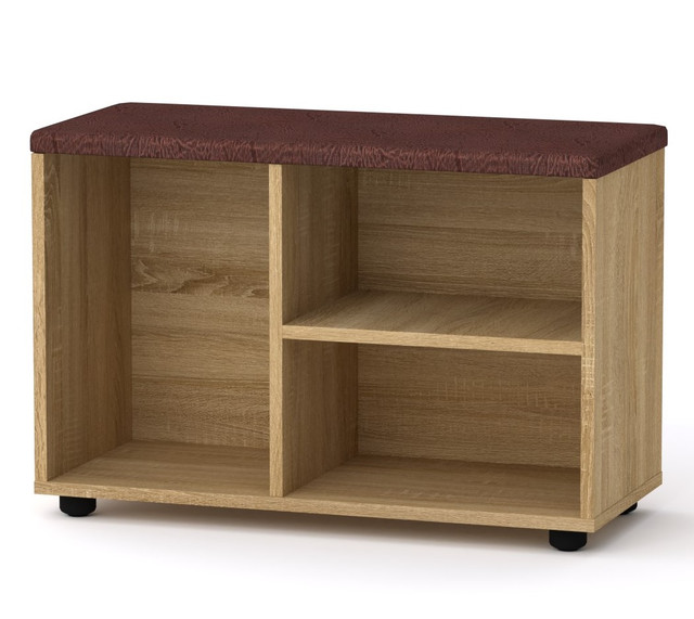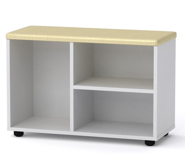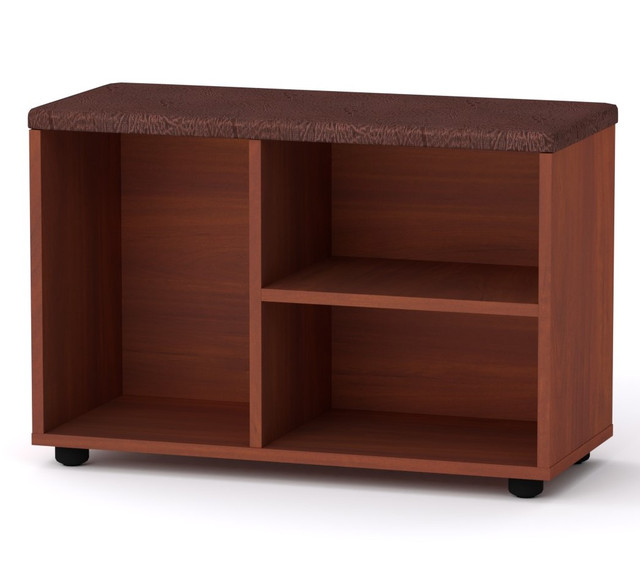 Тумба для взуття від меблевої фабрики Компаніт у відмінному сучасному дизайні, виготовлена із міцної ламінованої ДСП за технологією Swisspan (Швейцарія). Товщина ЛДСП 16 мм. Тумба містить відкриті полиці для взуття, а також м'яке сидіння. Вибір актуальних кольорів допоможе вписати її у ваш інтер'єр!