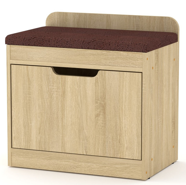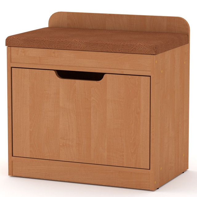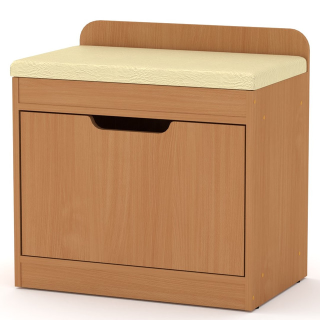 Тумба для взуття від меблевої фабрики Компаніт виготовлена із міцної ламінованої ДСП за технологією Swisspan (Швейцарія). Товщина ЛДСП 16 мм. Тумба складається з відділу взуття та м'якого сидіння. Цей предмет інтер'єру абсолютно необхідний у кожному будинку!